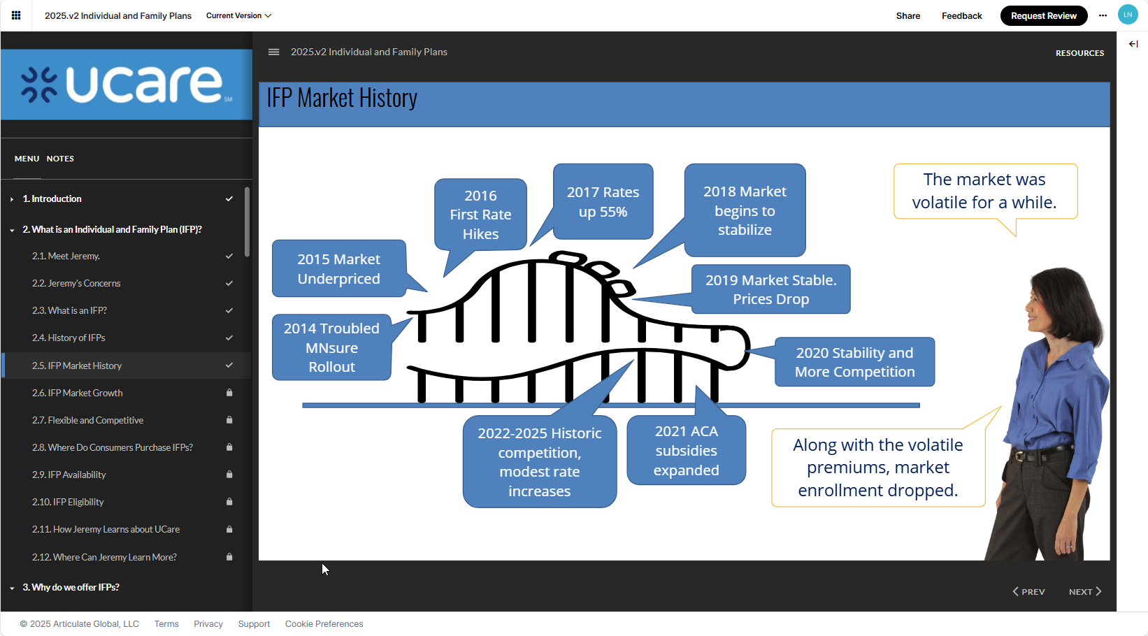 I evaluated the existing training, interviewed subject matter experts, and rapid-prototyped new scenario-based solutions in Articulate Storyline. I served as both instructional designer and eLearning designer/developer for all product and compliance training and redesigned many courses to be interactive, scenario-based, visually engaging, and aligned with UCare’s brand voice and service philosophy.